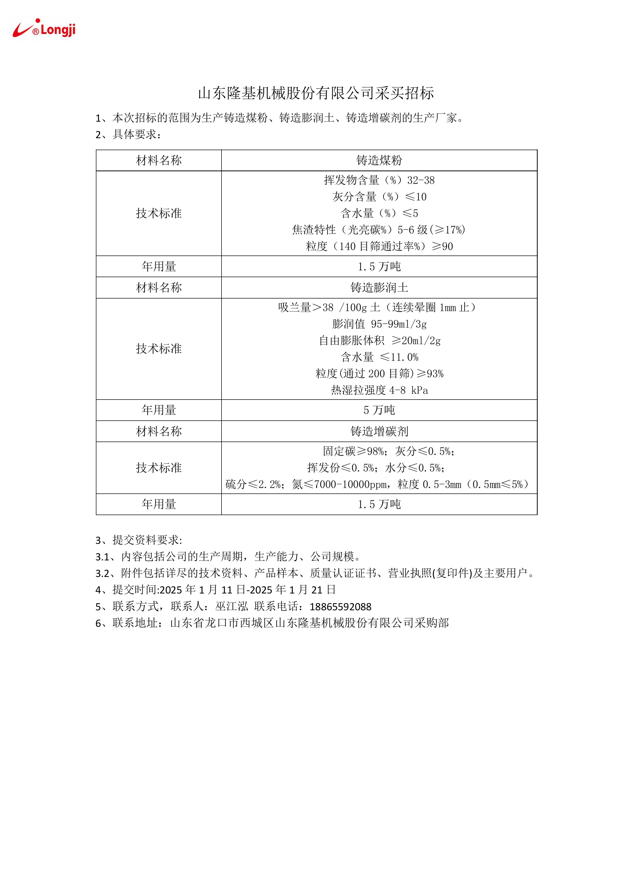山東隆基機械股份有限公司采買招標